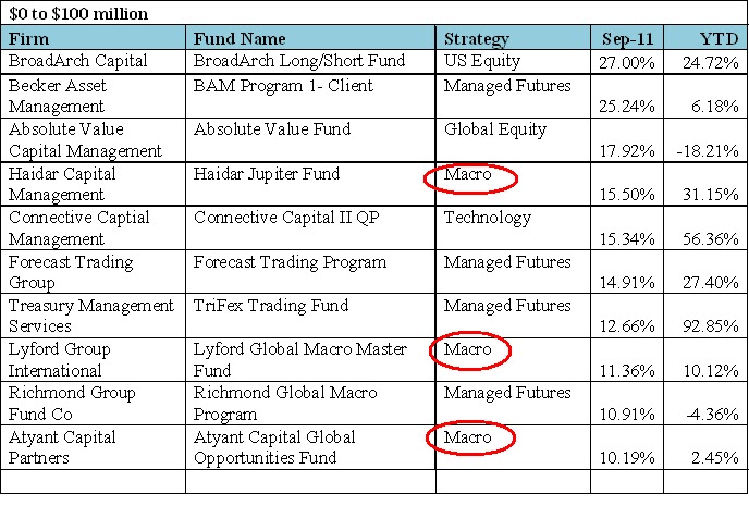 dispersion of returns in September, and that macro managers have the widest